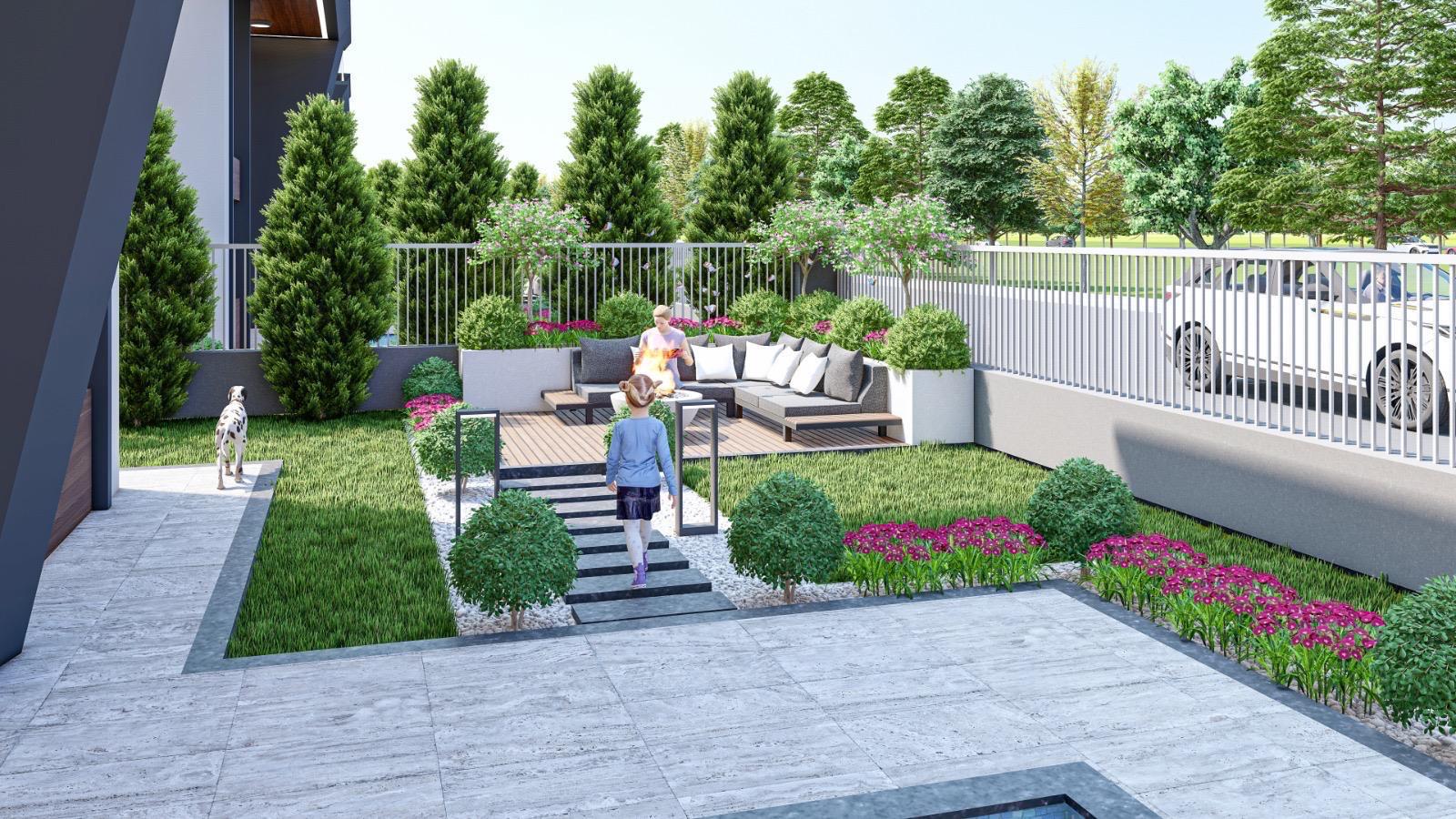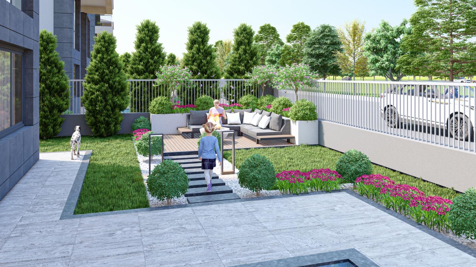 Renkli çiçek dokuları, mevsimsel yeşillikler ve özel oturma alanları ile kişiye özel huzur alanları oluşturulmuştur.